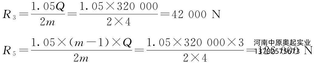 小车*大轮压是R1和R6的大值,R6=94.5kN>R1=93.5kN。所以,Pmax=R6=94.5kN为小车的*大轮压(主动轮压),R1=93.5kN为被动轮压,R1/R6=93.5/94.5=0.99,被动轮、主轮压比非常理想,被动轮压接近主动轮压但小于主动轮压,在实践中一般不会出现持久打滑现象。