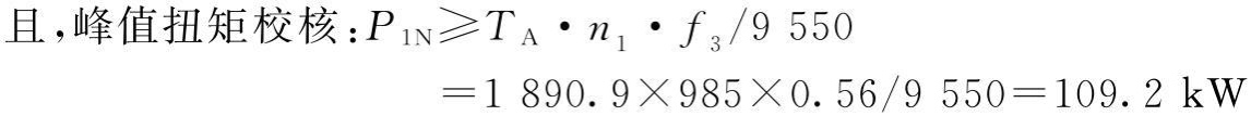 峰值扭矩校核:P1N=22.7kW≥TA·n1·f3/9550=318.1×970×0.7/9550=22.62kW
