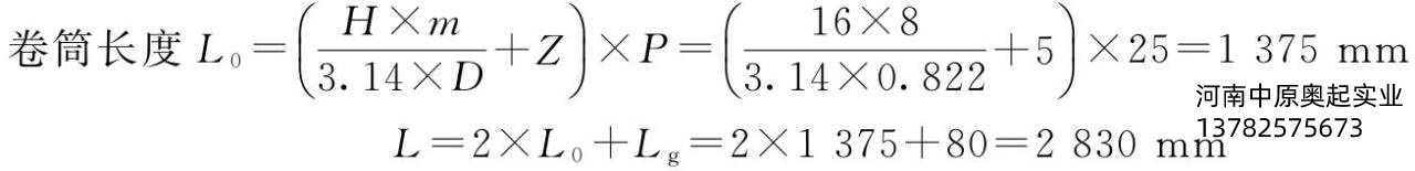 加1~2m余量,一分为二,每根钢丝绳长度为82m。