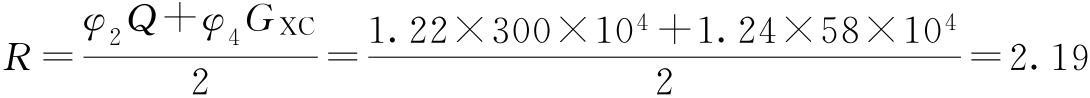 φ2=1.22;φ4=1.24;GXC=580000N;Gq=1380000N;Q=3000000N;B1=2018mm;B2=1578mm;δ1=δ2=δ3=δ4=24mm;b0=1430mm;[τ]=80MPa;Ix=14.56×109mm4。